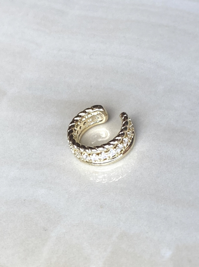Кафф Найтл украшен декоративным плетением и цирконами, что делает его очень интересным базовым украшением. Он отлично подойдет к уютным свитерам и к летящим свободным платьям и рубашкам.