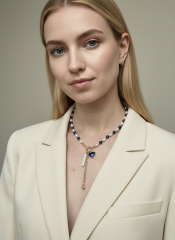 Колье-трансформер Ида синий, позолота